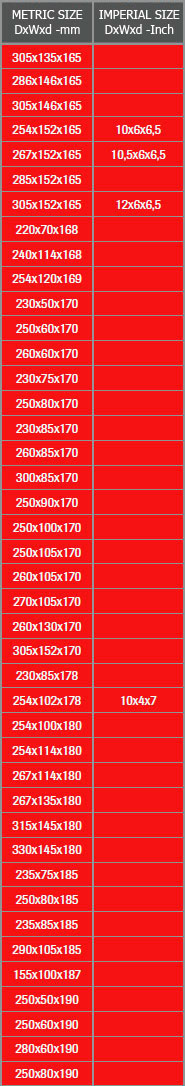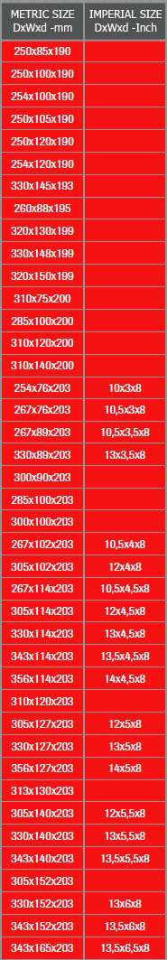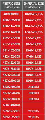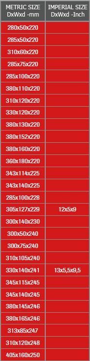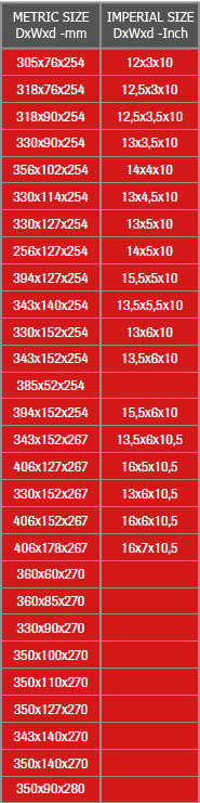 Размеры колёс диаметром посадочного места от 220 мм до 305 мм(12»)