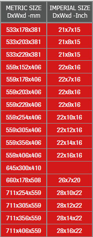 Размеры колёс диаметром посадочного места от 305 мм(12.125») до 559 мм(22»)
