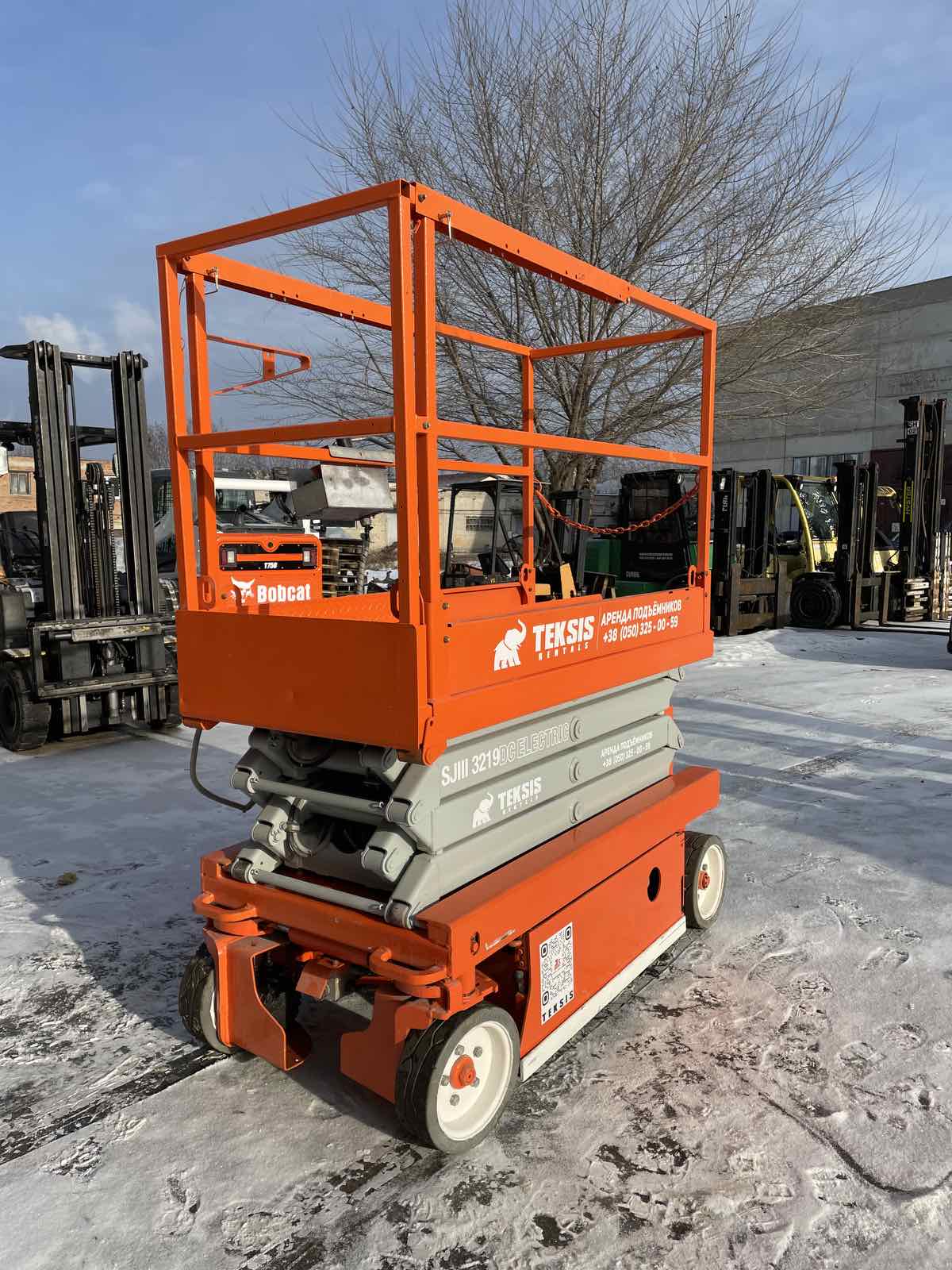 Ножничный электрический подъемник SkyJack SJIII3219 с высотой подъема 8 м и грузоподъемностью 249 кг.