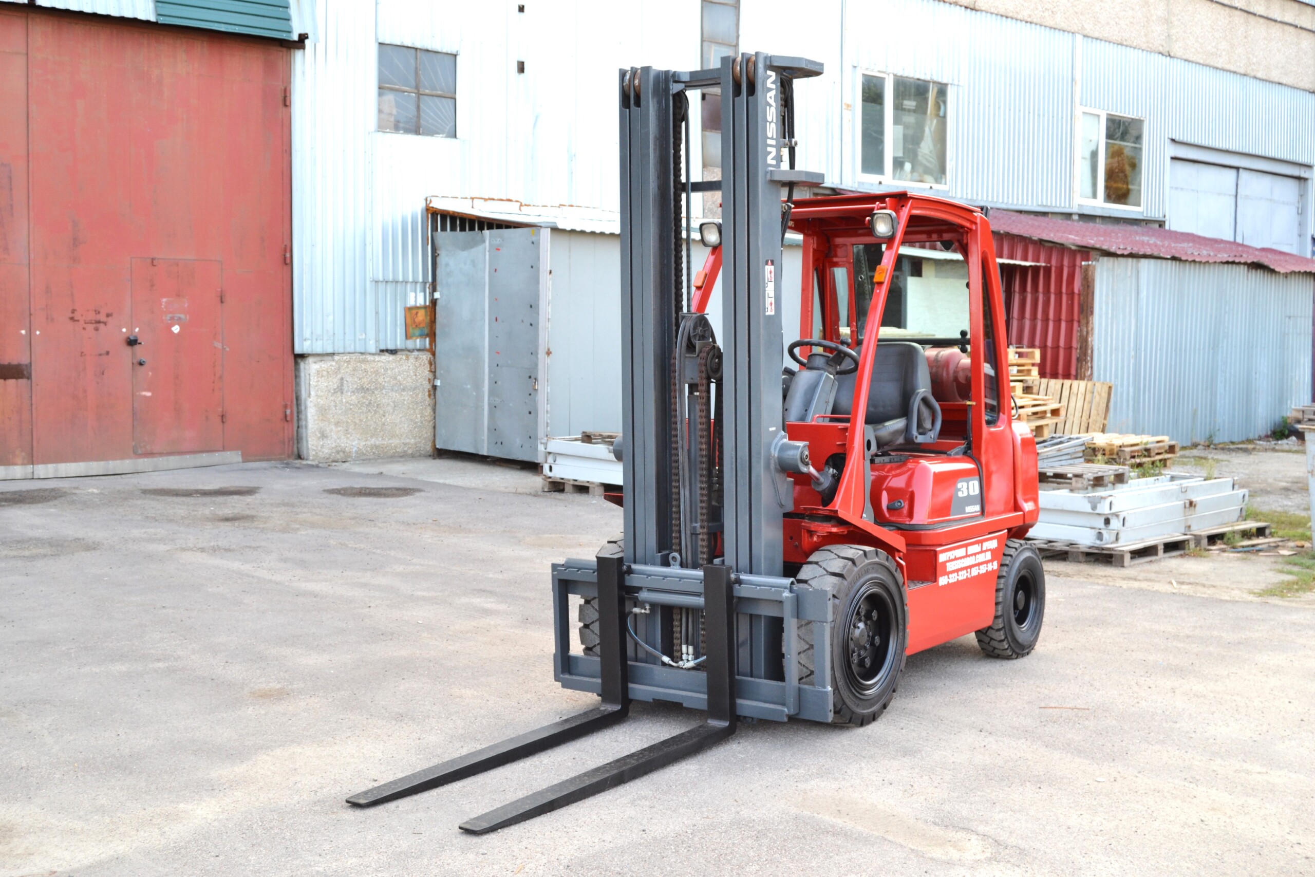 Вилочный газовый погрузчик NISSAN грузоподъемностью 3 тонны и высотой подъема 5.5 м в идеальном состоянии! ОРИГИНАЛЬНАЯ НАРАБОТКА — 8720 моточасов!!!